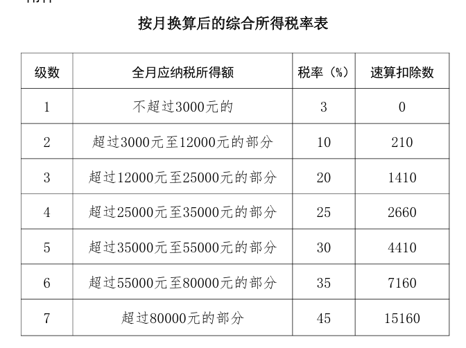 1. 將全年一次性獎(jiǎng)金/12后得到的數(shù)額,按照下表確定適用的個(gè)稅稅率和速算扣除數(shù)。