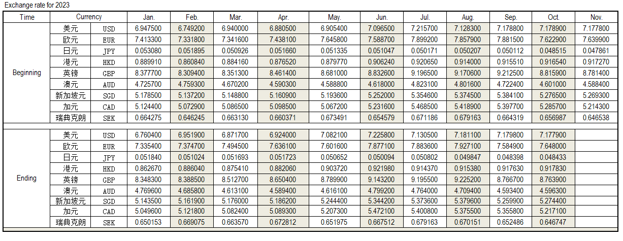 2023年10月外匯匯率,來源中國人民銀行供參考。